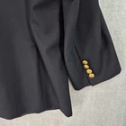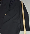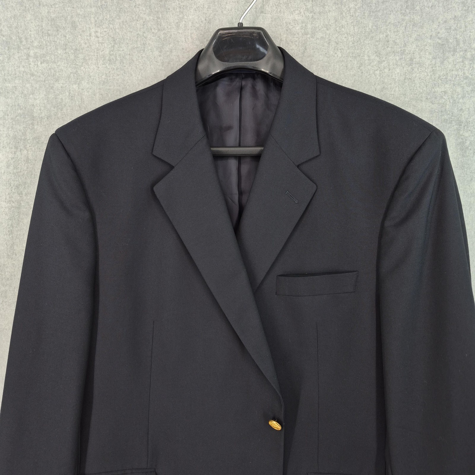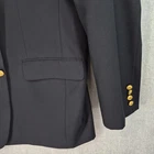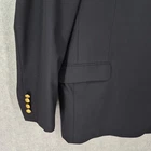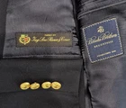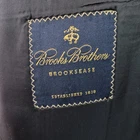 Brand: Brooks Brothers Style: Brooksease mens blazer/sport coat in a classic dark navy color with gold crest buttons. Material: Shell 100% wool; fabric by Ing. Loro Piana & C., Italy; fully lined interior. Color: Dark navy blue Size on tag: 50R Country of origin: Made in Canada (union made, UNITE HERE CANADA) Interior tags/text: BROOKWOOD-SPJ; code 6006B; STY#20063026; additional numbers 003982 1871; F07 Dept 026. Details: Two-button front closure, notched lapels, welt chest pocket, two front flap pockets, four-button cuffs, center back vent, fully lined interior with multiple inner pockets, extra matching gold buttons included.