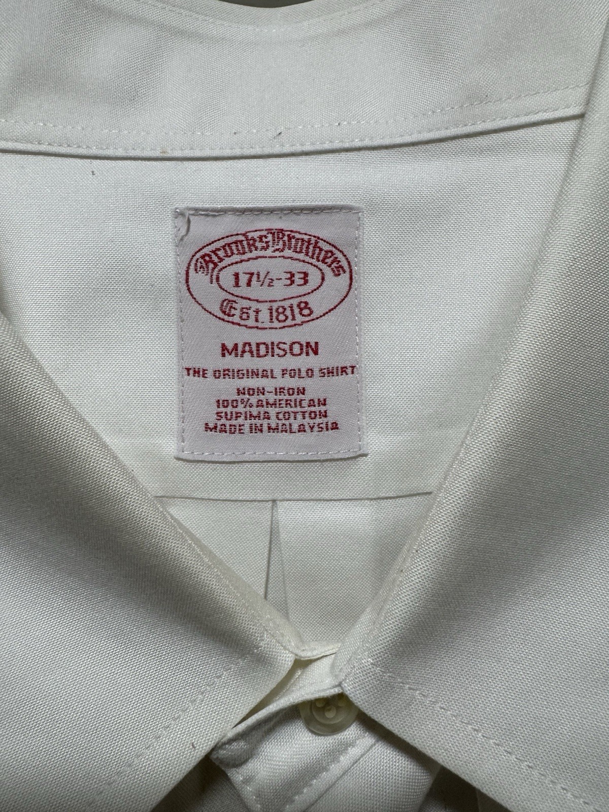 Brooks Brothers Men's White 1818 Cotton Dress Shirt Size 17.5-2/3