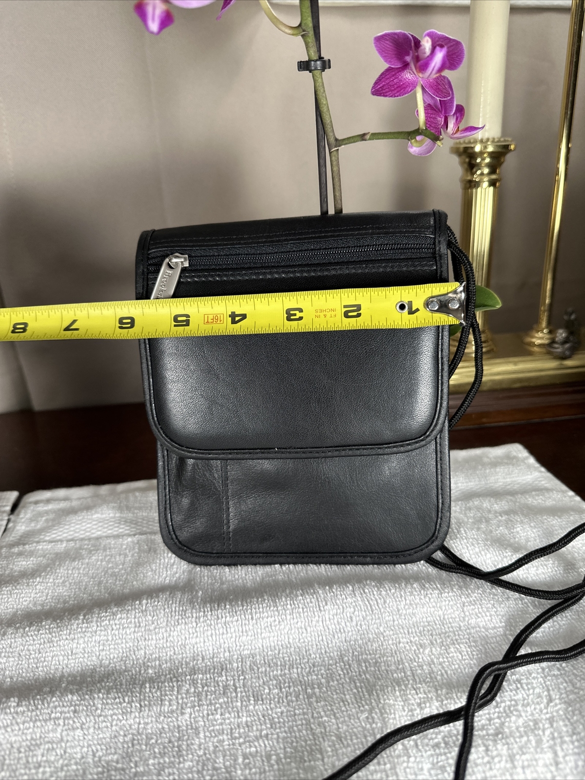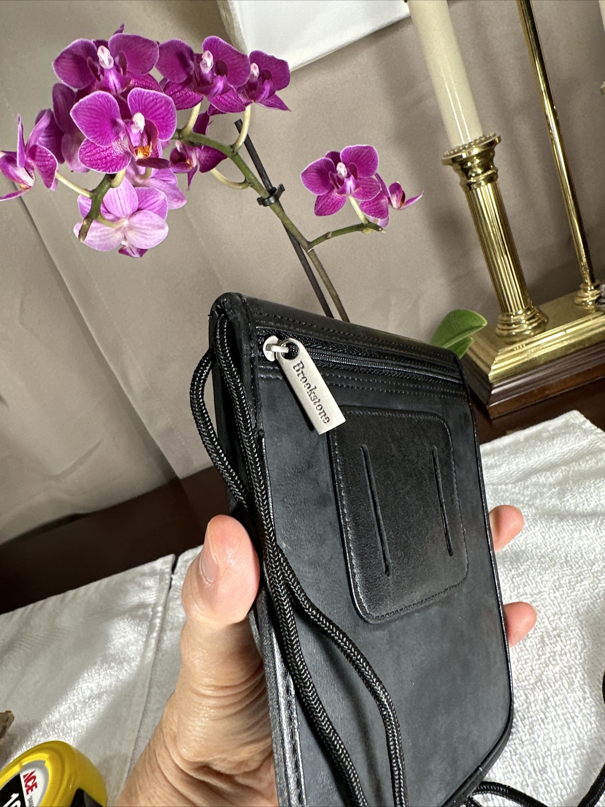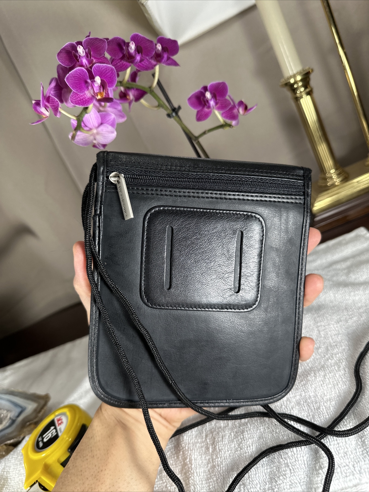 NEW Brookstone Black Passport Holder Hanging Neck Wallet Organizer w/Belt Slots.