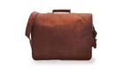 100% genuine goat leather messenger bag with a durable inner lining made of canvas. Designed to carry mini laptops, tab, documents or other personal belonging. A genuine hand made product using chemical/dye-free leather. Natural oils and light have been used to obtain the style of the leather - chemical free! This bag features a wonderful unique and vintage look, designed to carry mini laptops, tab, documents, personal belongings. Perfect for the office, school or as a gift! Specifications: Size:- 13x17x6'' inch Made from 100% genuine, strong, lightweight, durable goat leather, tanned without the use of chemicals Adjustable shoulder strap, half flap bag with strap lock & small front pocket. 3 big inner compartment for carrying tablet, smart phone's, tab's etc. 2 zipper compartments for important documents/paperwork etc. 1 large pocket in front & 2 small pocket in side. Inner canvas lining Vintage leather wash Leather softens and darkens with use Handmade in India by experienced crafts people.