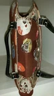 Handbag Purse 11" x 8" x 5" 10" Handle drop College Football Themed Brown Football Helmets of many teams 1 large Compartments 2 Open pockets inside 1 zippered pocket inside Unusual & Colorful Good pre-owned condition. Some stains inside SEE PICTURES 10, 11 Shows some wear and usage inside & out