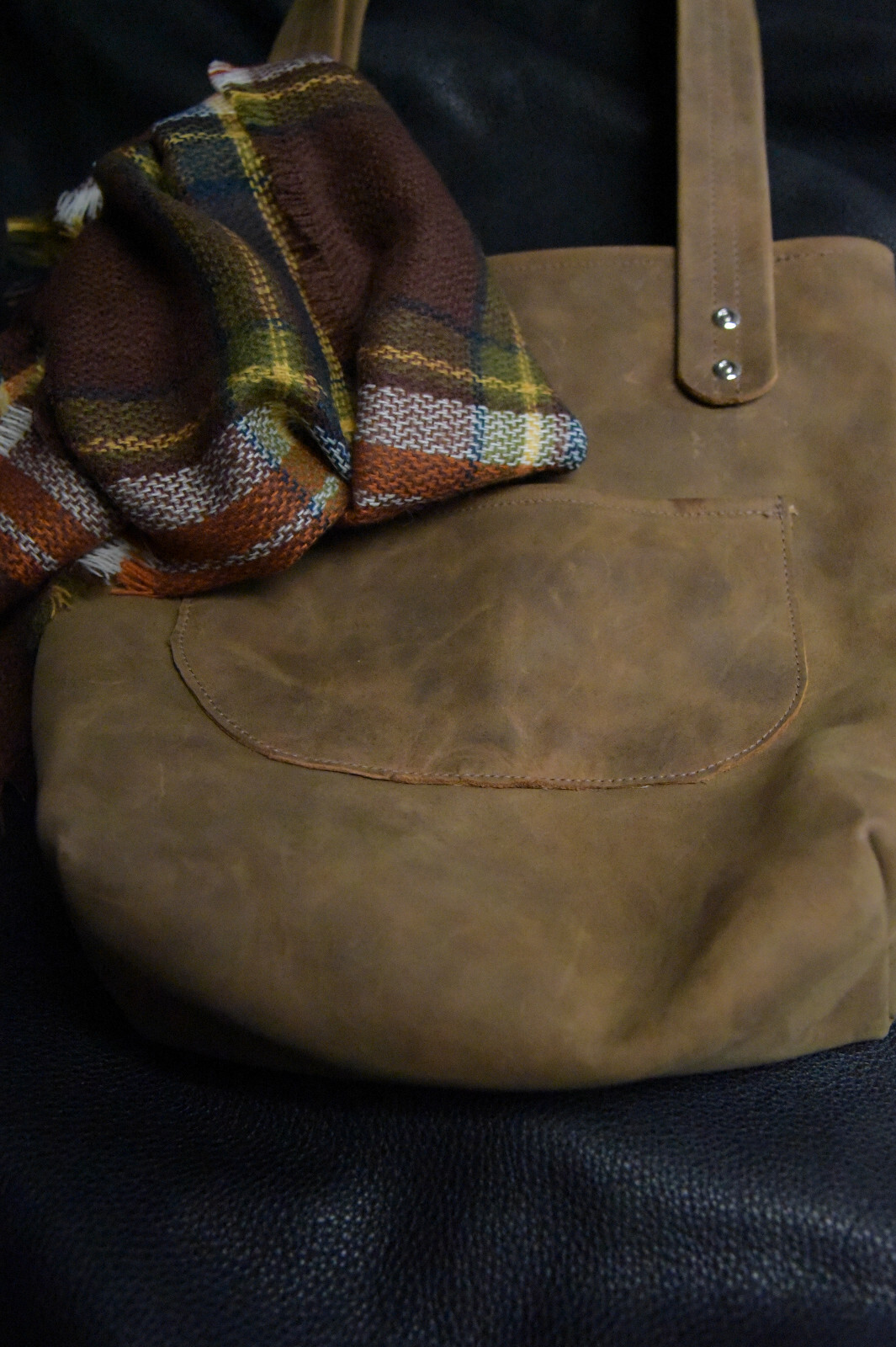 Lovely handbag, shoulder bag the handles are securely fastened so carrying weight is not an issue. The durable yet authentic leather has a character of its own. Soft yet sturdy and a gorgeous scarf comes along with the bag that is shown in the photo. Use the scarf or adorn the bag with it as you wear it! Bag itself measures approximately 12" x 12" not including the handle. Each handbag is individually created, hand cut from raw leather material, sewn and designed in house! More bags coming soon!