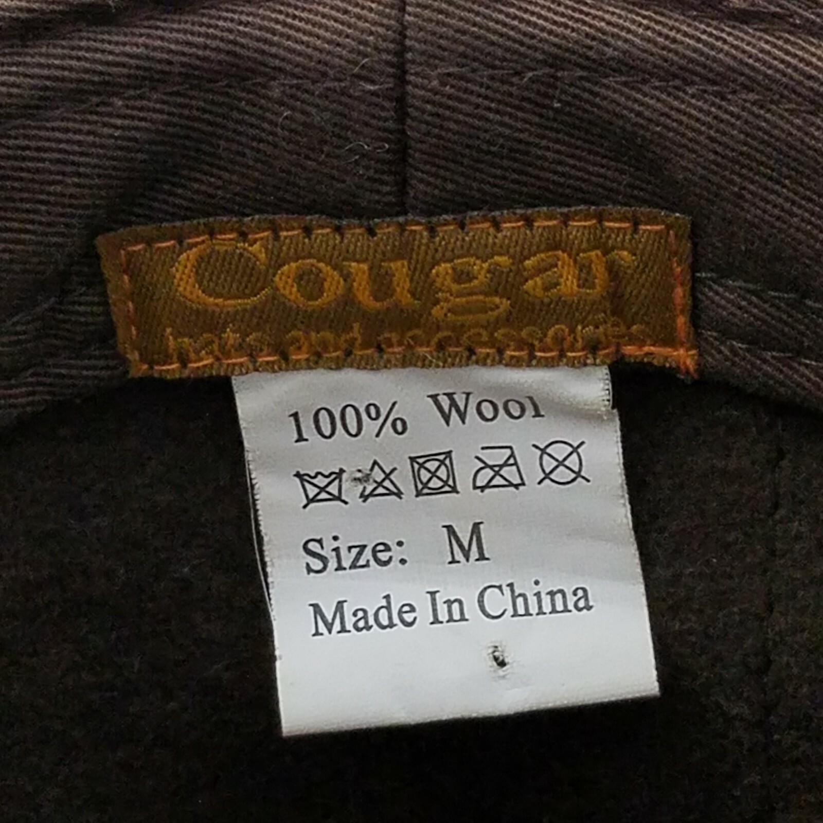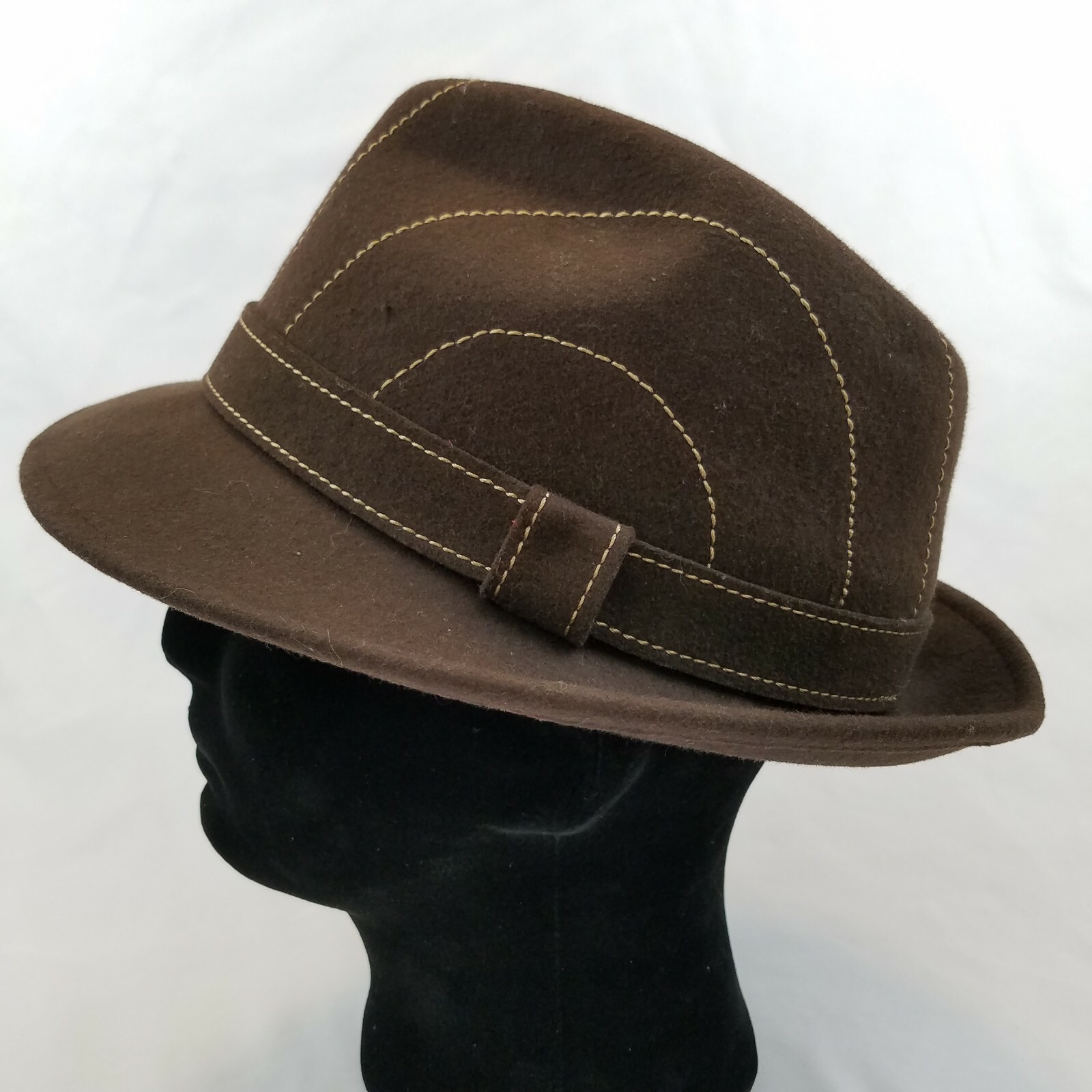 This stylish wool fedora is a fantastic find! The brown stitch and striped design give it a cool gangster vibe, while the Cougar brand ensures quality. Fits perfectly at 22" circumference, and it's in excellent condition—no flaws at all. A must-have for any vintage-inspired wardrobe!