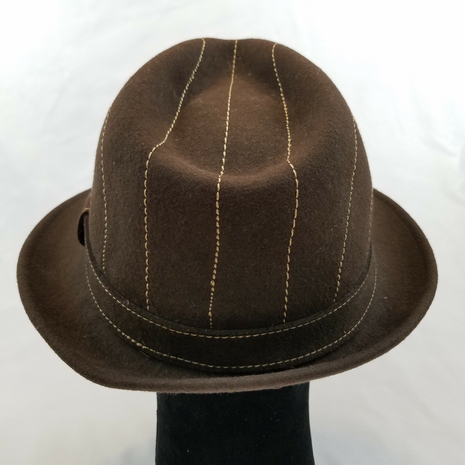 Wool Fedora Brown Stitch Striped Gangster Style Hat Cougar Brand Size M Measures approx 22" in circumference Very Good Condition - No rips, tears or stains. See Photos