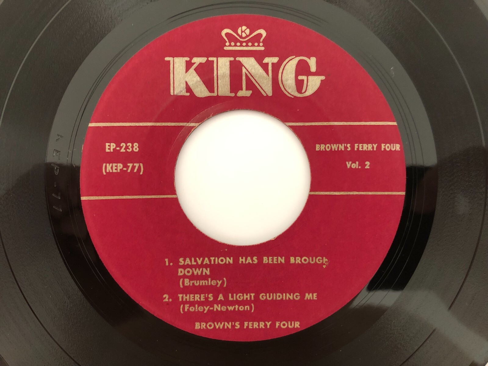 artist Brown's Ferry Four label King 238 title Vol 2 sleeve condition VG top loader, no seam splits, seam wear, lite ring wear record condition VG+ notes Original maroon label pressing. This is Grandpa Jones, Merle Travis and the Delmore Brothers incognito. Grading scale: NM / VG++ / VG+ / VG / VG- / G+ / Poor I combine S&H on multiple orders and have no problem starting a stack if you wish to combine S&H for future orders. Please view my other listings for more desirable 45's, 78's and LP's in the country, bluegrass, gospel, rockabilly, rock & roll, teen, instrumental genres.