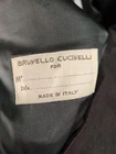 Brunello Cucinelli Blazer Jacket Mens Extra Large Brown Solid Made in Italy Classic Condition: Good pre-owned condition — gently worn, minor wrinkles but no major flaws or stains. Some light creasing visible as shown, otherwise no visible damage. Outer shell is a brown solid weave, fully lined in matching brown. Sophisticated, timeless look with a classic notch lapel and two front buttons. Features two front flap pockets and one chest pocket. Double vented back design for comfort and movement. All buttons are intact. Inside features the "Brunello Cucinelli for" label and "Made in Italy" noted inside the lining. No material content tag visible. Measurements (approximate): - Chest (pit to pit): about 23.5 inches - Length (collar seam to hem): about 30 inches - Shoulder to shoulder: about 19 inches - Sleeve length (shoulder seam to cuff): about 25 inches Tag size: Not shown, fits like Mens Extra Large based on measurements provided. Made in Italy high-end menswear; great for business, formal, or luxury casual style.