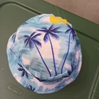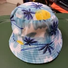 Bucket Hat Floral Palm Tree Print Reversible Yellow With Kangaroo Logo