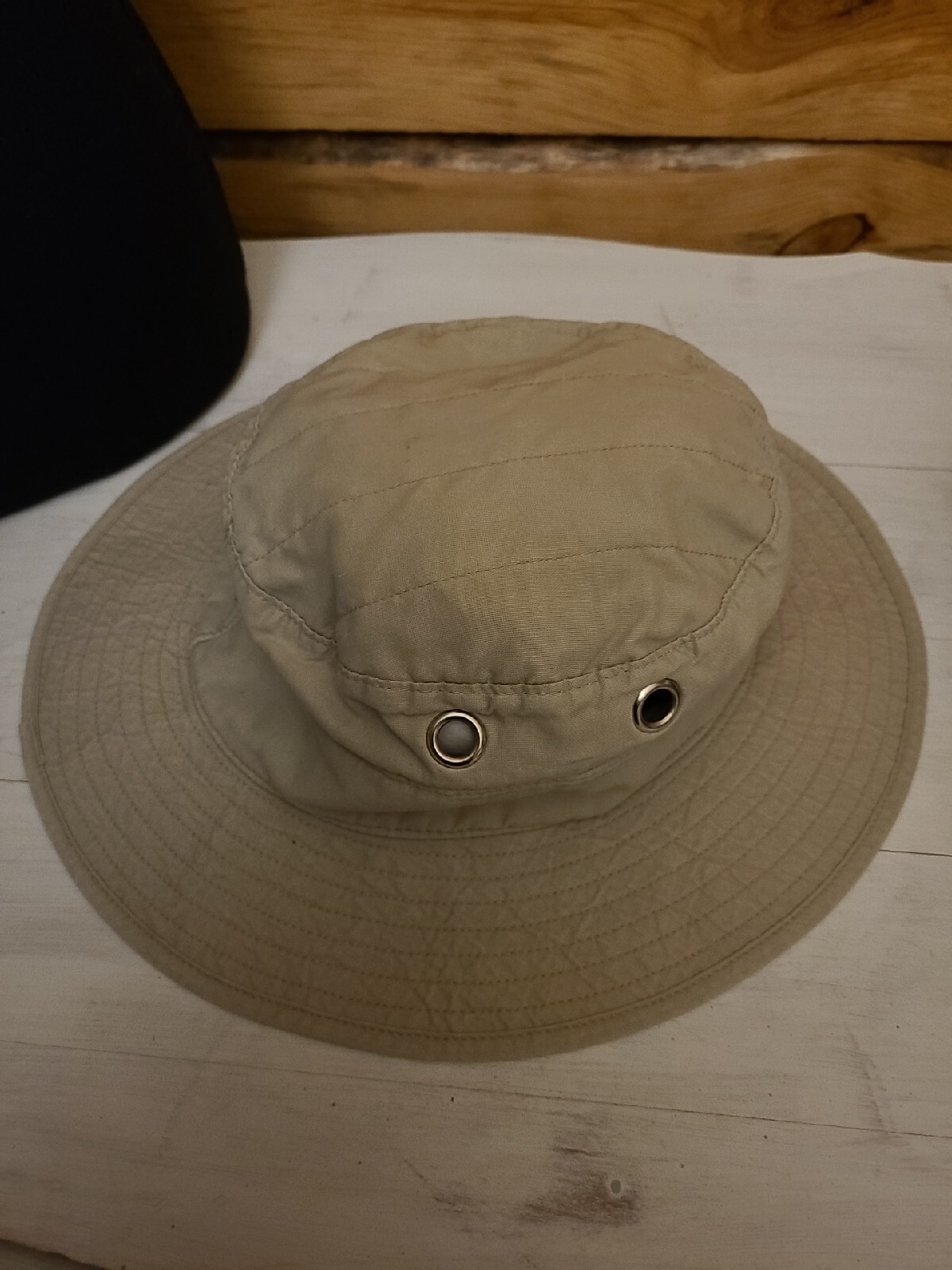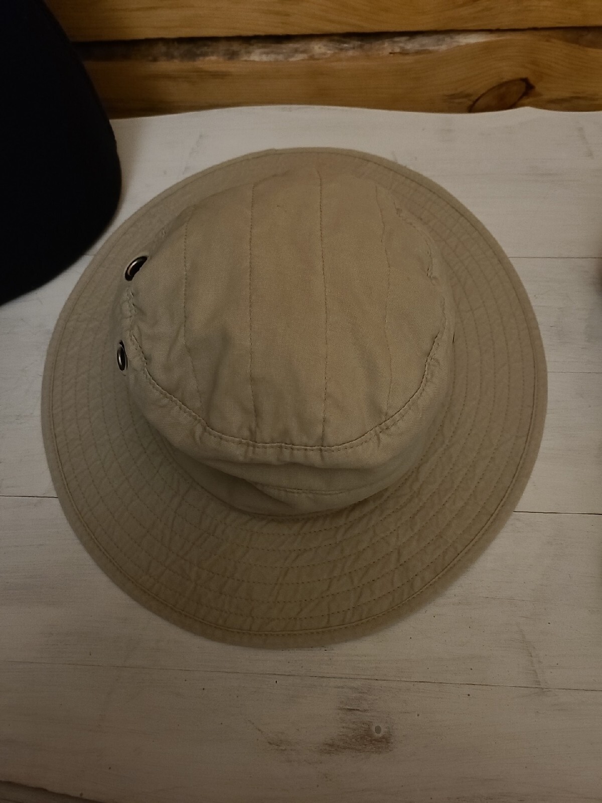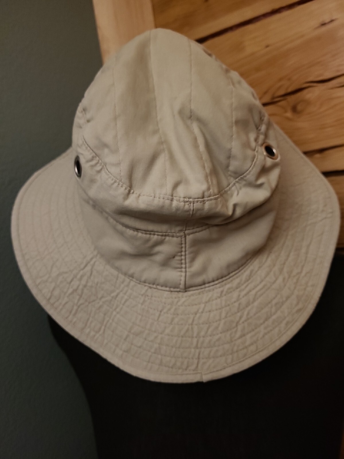 Bucket Hat Unisex L Tan Ecru Fishing Boonie Brim Visor Camping Fishing Like new - no tags has grommeted holes on sides for air flow