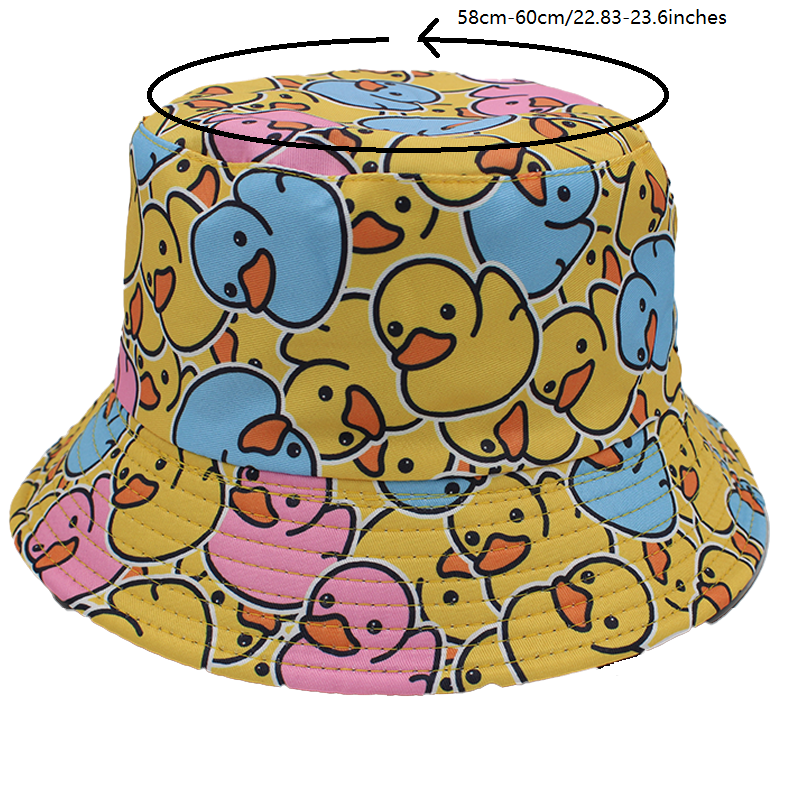 A good bucket hat for summer a good style, with duck print and with a black background, works double-sided. also, good gift for your friends or familiars size unique unisex