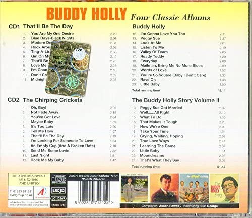 Further Details Title: Four Classic Albums Condition: New Format: CD EAN: 5022810715122 Description: Avid Rock N Roll launches with its Four Classic Rock N Roll album series with a re-mastered 2Cd release from Buddy Holly, complete with original artwork and liner notes. 'That'll Be The Day', 'Buddy Holly', 'The Chirping Crickets' and 'The Buddy Holly Story Vol 2' To quote from the liner notes from 'That'll Be The Day'. 'Listen now, as Buddy Holly sings out with a collection of great tunes. tunes ideally suited to his unique voice and style'. We will never see or hear his like again. No Of Discs: 2 Genre: Pop Release Date: 09/16/2016 Artist: Buddy Holly Record Label: Avid Records Ltd. (Membran) Release Year: 2016 Missing Information? Please contact us if any details are missing and where possible we will add the information to our listing.