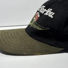 Has what appears to be a bleach stain on the left side of the rim. Not super noticeable, but it is there. Does have some slight fraying of strings in a couple sections, but nothing major. Aside from that, no other imperfections to note. Great hat for collectors!