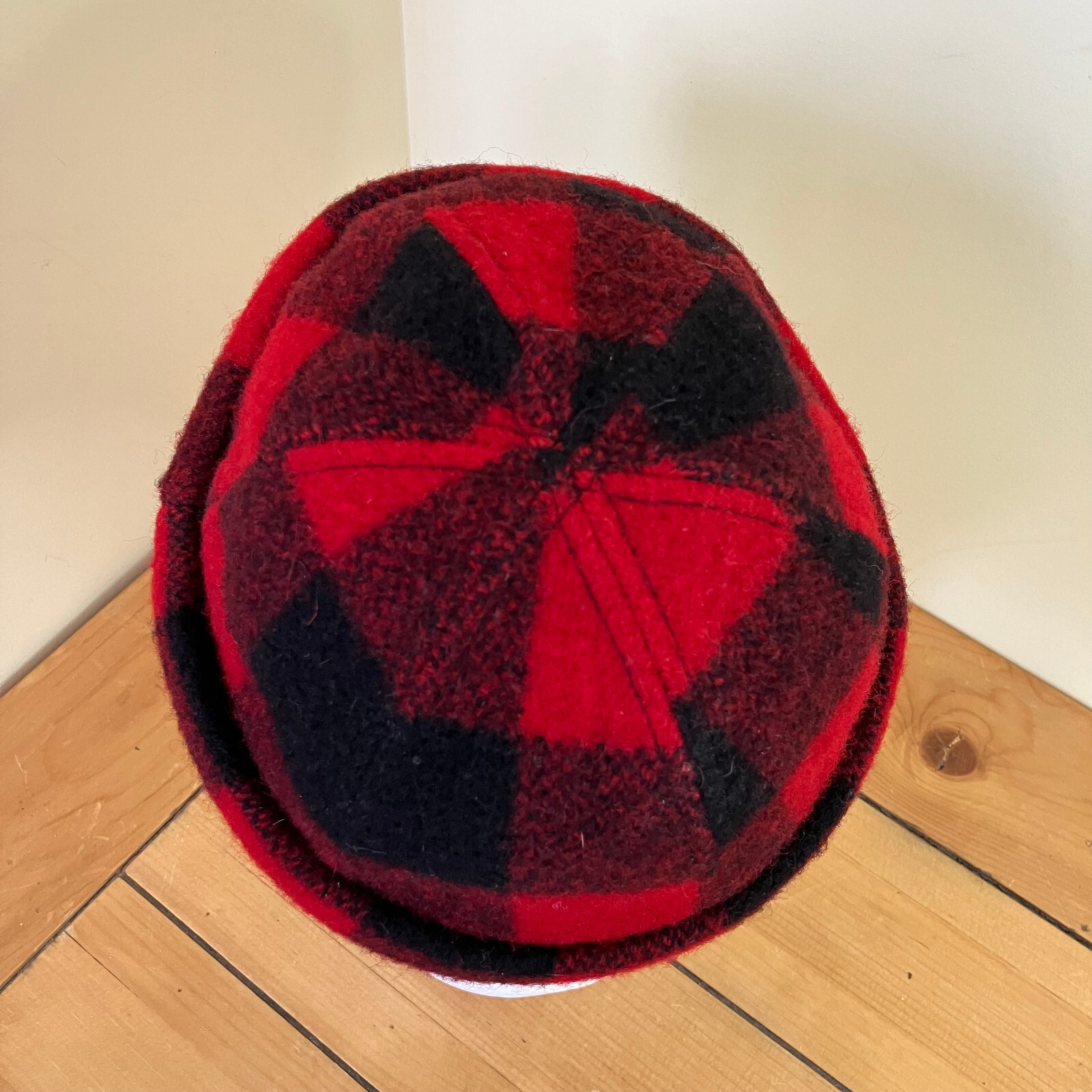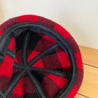 Wool blend fleece beanie hat in a classic red/black buffalo plaid pattern. Tag was cut out, fabric feels like wool or wool blend, hand washing is recommended. Adult size, inner circumference is approx. 22". Pre-owned condition: inner black hatband & seam binding has some discoloration from wear. Hat has been freshly hand washed. The pictures show the actual hat that you will receive. Ships from Alberta, Canada. Tax applies to purchases.