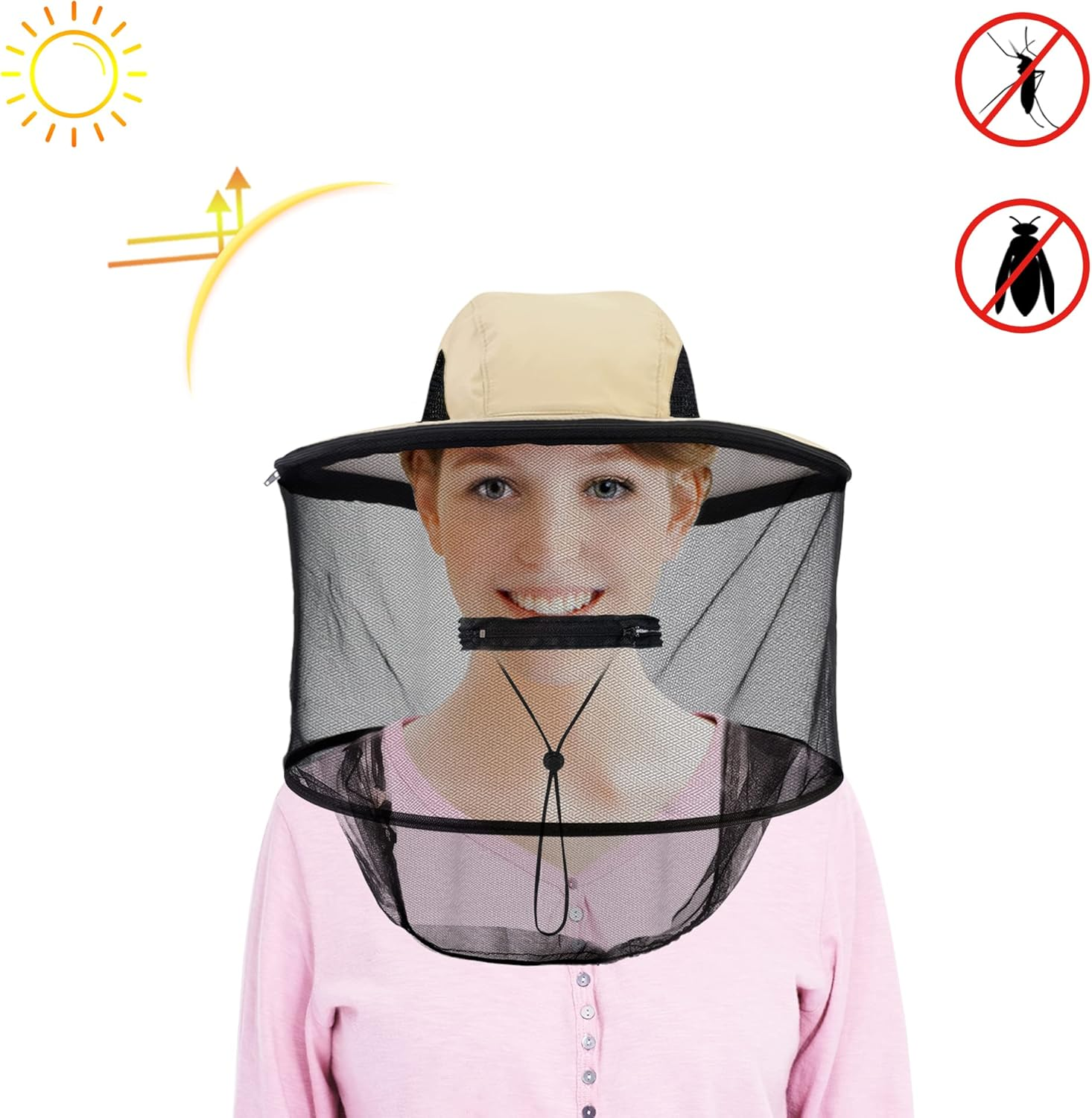 This head net hat is a game-changer for outdoor adventures! The adjustable drawstring and zipper make it super easy to put on and adjust for a snug, comfortable fit. The netting keeps bugs away while the brim provides great sun protection. Perfect for fishing, hiking, or gardening—lightweight, breathable, and super practical. A must-have for any outdoor enthusiast!