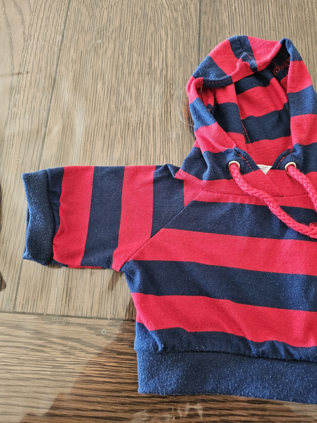 The Build-A-Bear Striped T-Shirt and Jean Shorts set is a casual clothing outfit designed for bears. This multicolor set includes a vintage shirt and shorts, perfect for everyday wear. Created by Build-A-Bear Workshop, the franchise ensures quality and originality in this adorable ensemble for your furry loved one. Add this charming clothing set to your bear's wardrobe for a cute and stylish look.