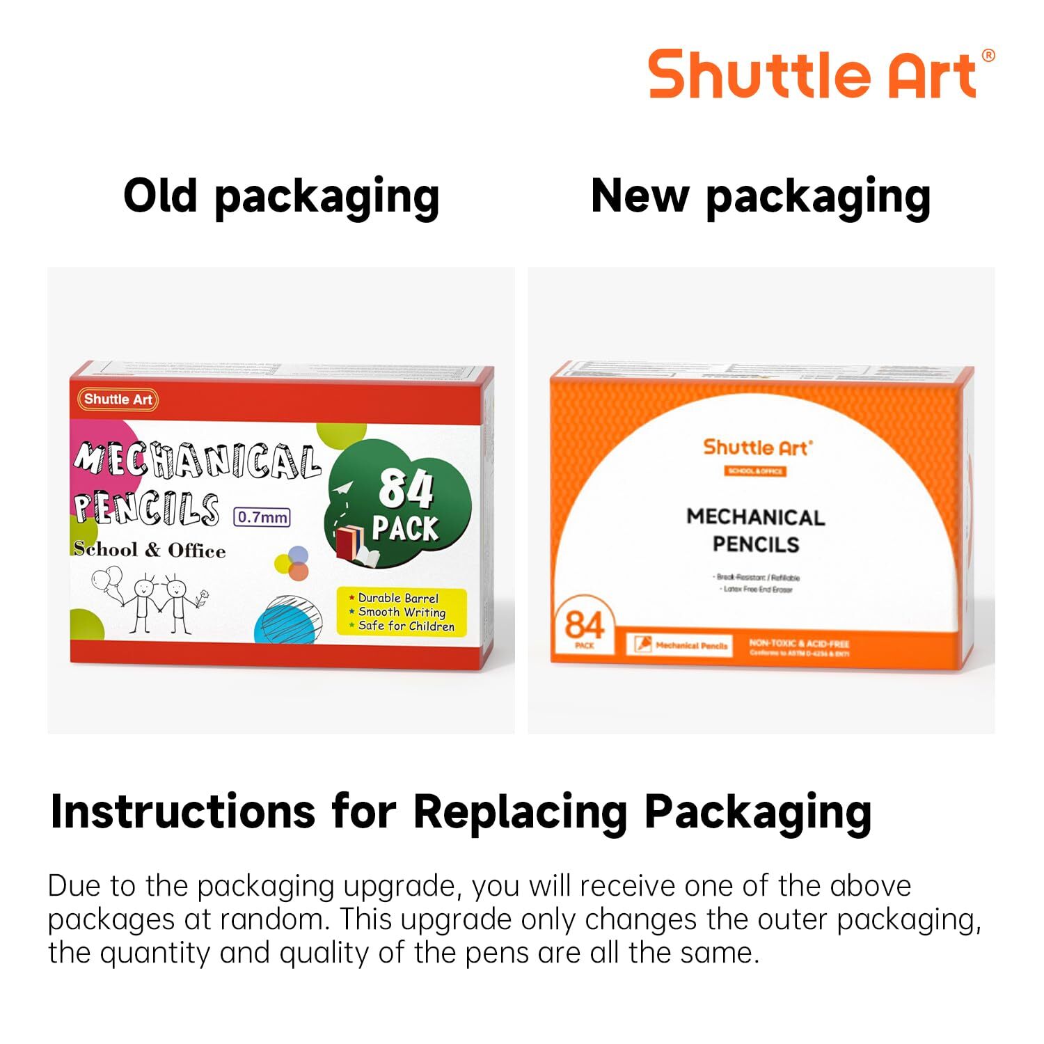 Bulk Mechanical Pencils 84 Pack 0.7mm HB #2 Assorted Colors for School Office 84 PACK VALUE SET: Shuttle Art 0.7mm Mechanical Pencils bulk set comes with 84 pack HB #2 mechanical pencils in 6 different barrel colors (14 pack of each color), perfect for daily writing and drawing at home, school and office ALWAYS READY TO USE: Pre-loaded with pencil lead, you can start writing at any time without the trouble of sharpening, ideal for testing, sketching, writhing on notebooks, journals, papers, etc SMOOTH WRITING & BREAK RESISTANT: High quality pencil leads are sturdy enough for long time writing. They goes smoothly and clearly on papers without smudging or smearing, and are break resistant even you press hard, quite suitable for kids and students. Conforms to ASTM-D4236, non-toxic and acid-free, safe for kids and adults END ERASER COME IN HANDY : Each lead pencil comes with an end eraser on the click button, with gentle rub, you can erase pencil marks easily and cleanly, and it’s durable enough for normal use SERVICE GUARANTEE: Your satisfaction is our top priority, please rest assured to purchase our products. If you are not satisfied with our products or have any questions, please feel free to contact us at any time Shipping We offer FREE shipping on all orders! We ship within Three business days of payment, usually sooner. We use a selection of shipping services such as UPS, FedEx, USPS etc. We only ship to the lower 48 states, no APO/FPO addresses or PO Boxes allowed. Local pickups and combined shipping options are not provided at this time. Return You can return a product for up to 30 days from the date you purchased it. Any product you return must be in the same condition you received it and in the original packaging. Please keep the receipt. Payment We accept payment by any of the following methods: PayPal Please pay as soon as possible after winning an auction, as that will allow us to post your item to you sooner! Feedback Customer satisfaction is very important to us. If you have any problem with your order, please contact us and we will do our best to make you satisfied. Contact Us If you have any queries, please contact us via ebay. We usually respond within 24 hours on weekdays. Please visit our eBay store to check out other items for sale! Thank you for shopping at our store.