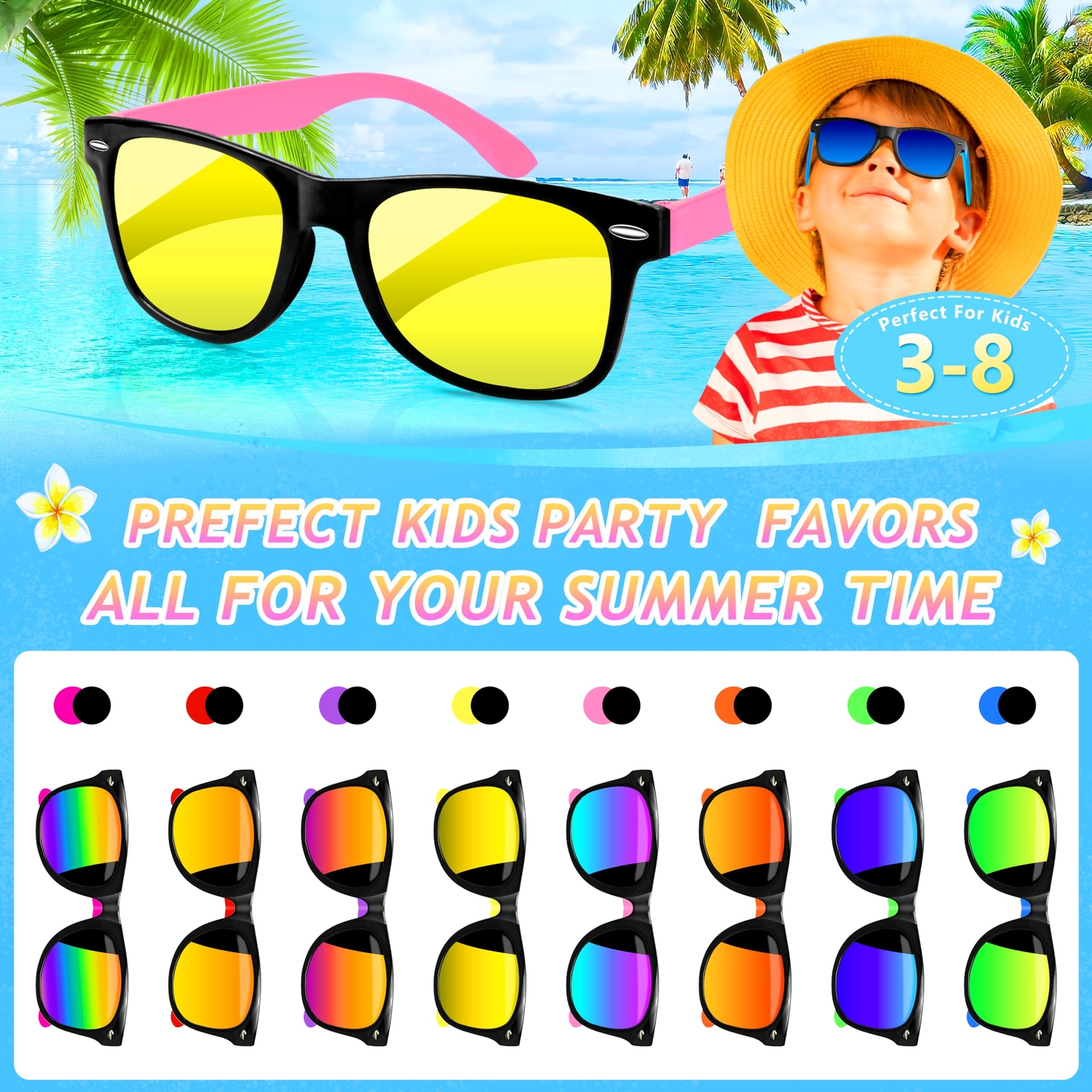 Sunglasses Bulk, Sunglasses Kids Party Favor, Boys and Girls, Pool Toys, Summer Toys, Party Toys, Goody Bag Stuffers (16) Specification: Size: Frame of each pair measures 5". Made of comfortable and unbreakable PP materials 8 bright colors (red, orange, yellow, green, blue, pink, rose pink ,purple) 100% protection against harmful UVA/UVB rays Package Contians: 8 pieces kids sunglasses bulk 【What's in the Package】Come with bulk pack of 8 kid sunglasses in 16 colors. This party favor pack includes a combination of red, orange, yellow, green, blue, pink, rose pink and purple. The value-for-money gift pack can bring freshness to children every day. No longer worry about loss of glasses. 【Material】The frame and the temples of the glasses are made of high-quality PP material, which makes them very flexible and almost unbreakable. 【Size】The total width of the neon sunglasses are approx. 5.0 inches and the leg length is 4.72 inches, suitable for kids over 3 years old. 【Summer Party Favors】Get summer ready with these hot eyewear looks for the whole family. Kids' sunglasses are always a fun party favor that no one can resist and these neon sunglasses in bulk will stand out and be enjoyed by all! 【Perfect Gifts】Tuck these sunglasses into treat bags, and end-of-the-year gift bags, or give them out as party favors, carnival giveaways, or just because of rewards. Shipping from the USA All of our products are shipped from the USA, ensuring quick delivery to your destination. Payment We offer the following payment methods: PayPal, credit card, bank transfer, and eBay's secure payment system. Free Shipping & Free Returns Shipping within the USA is FREE. Additionally, any return is absolutely free for you. Risk-Free Purchase You have the option to return an item within 30 days without any justification. We cover the return shipping costs! Fast Shipping We ship immediately upon receipt of payment. Generally, the package is delivered within 2-3 days in the USA. If it takes longer, we will contact you. Quality and Costs Made in Europe, USA, China No customs fees or additional charges Total satisfaction guarantee Invoice with declared VAT available upon request in .pdf format Feedback Your feedback is very important to us. After you pay for your purchase, you will automatically receive positive feedback from us.