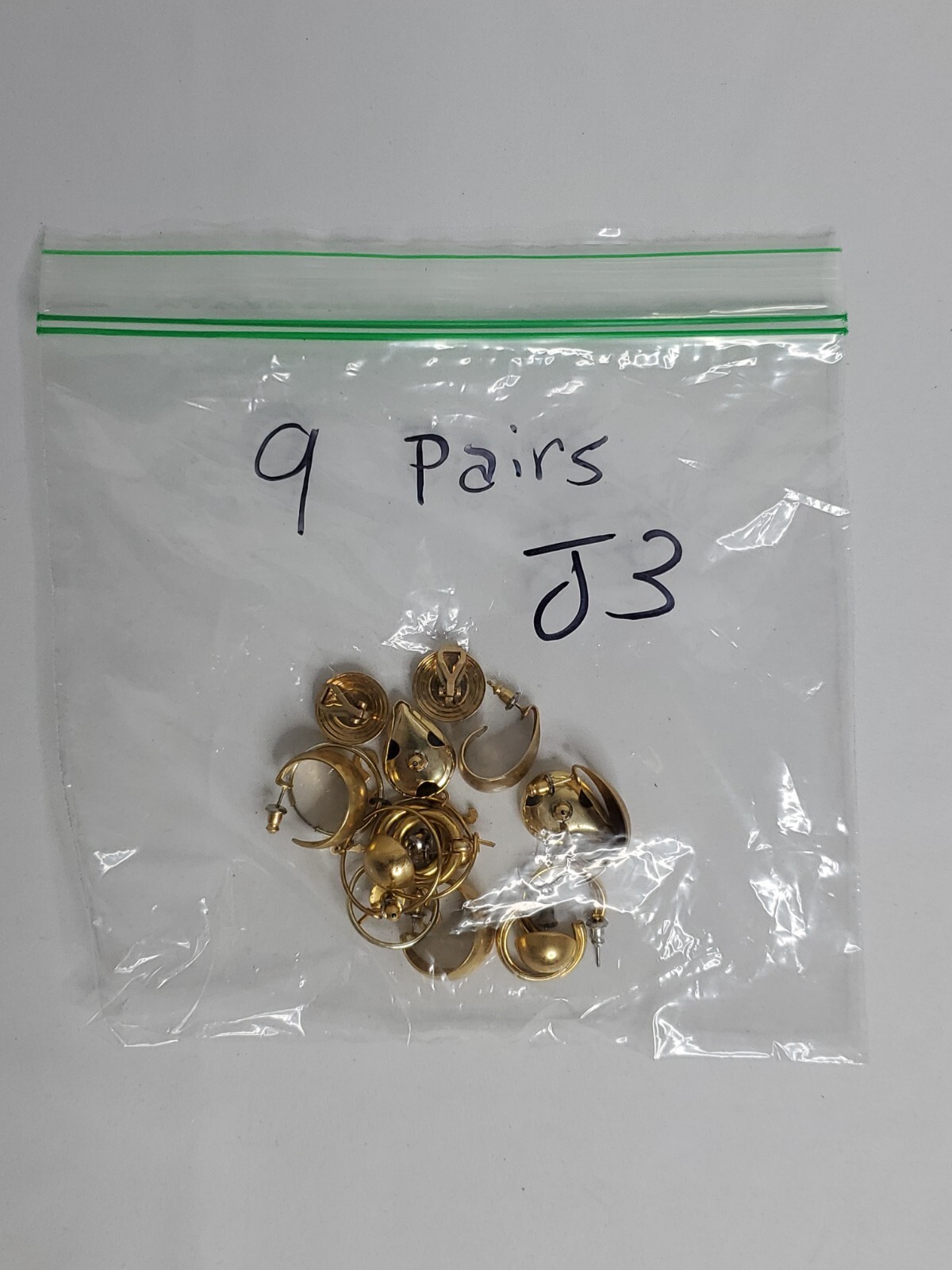 Earrings Bulk Lot of 9 Pairs Assorted Gold Colors and Sizes Studded Pre owned wear and used Distressed Clothing and Fabric Items: All clothing and fabric Items have been cleaned, washed, laundered per eBay Standards.