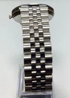 Elevate your style with this vintage Bulova Caravelle men's wristwatch, made in Switzerland. With a silver bracelet and a round, polished stainless steel case, this watch exudes classic elegance. The geometric dial pattern features Arabic numerals and a date indicator, with a seconds hand and a 12-hour dial. Equipped with a quartz movement, this watch is both reliable and stylish. The double-locking fold-over clasp ensures a secure fit, while the water resistance makes it suitable for everyday wear. This Bulova Caravelle comes with a snap back and push/pull crown, making it a versatile addition to your watch collection. 1111