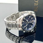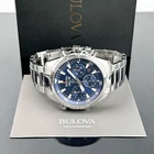 This new Bulova men's six-hand chronograph watch from the mar star collection delivers the vibrancy of the sea with the ruggedness required by those who wish to explore it. The silver-tone stainless steel case features a balance of brushed and polished facets, a flat mineral crystal, and a pull-out crown achieving 100m water resistance.The dial features a running seconds sub-dial, with a central chronograph seconds hand and 60-minute and 1/20 seconds chronograph sub-dials. The dial is completed with an internal rotating 60-minute timing bezel, operated by the crown at 10 o'clock. Features Number of Batteries: 1 Features: Chronograph, Quick Ship Battery Type: Lithium Ion Jewelry Closure: Fold Over Clasp Power Source: Battery (included) Watch Movement: Quartz Water Resistance: 100m Band Color: Silver Tone Dial Color: Blue Metal Color: Silver Tone Case Thickness: 11.8mm Case Width: 43mm Watch Band Length: 8 1/2 Inch Band Content: Stainless Steel Case Materials: Stainless Steel Band Width: 22mm Care: Wipe Clean Band Type: Metal Link Shipping: All items will be shipped within 2 days upon receipt of payment (except weekends and holidays). If Payments are received on weekends or holidays, goods will be shipped on the following business day. Buyer confirms (offers) address & Phone number after order item.If you need to change your address after placing an order, please contact me. We offer expedited service. If you need, please contact us. Returns: We support a 30-day return and exchange policy. If you are not satisfied with the product you received, you can contact us for a return or exchange. In order to be a full refund, less shipping expenses, your returned merchandise must be in its original new condition, as shipped, with all packaging, manuals, and paperwork intact and unaltered.