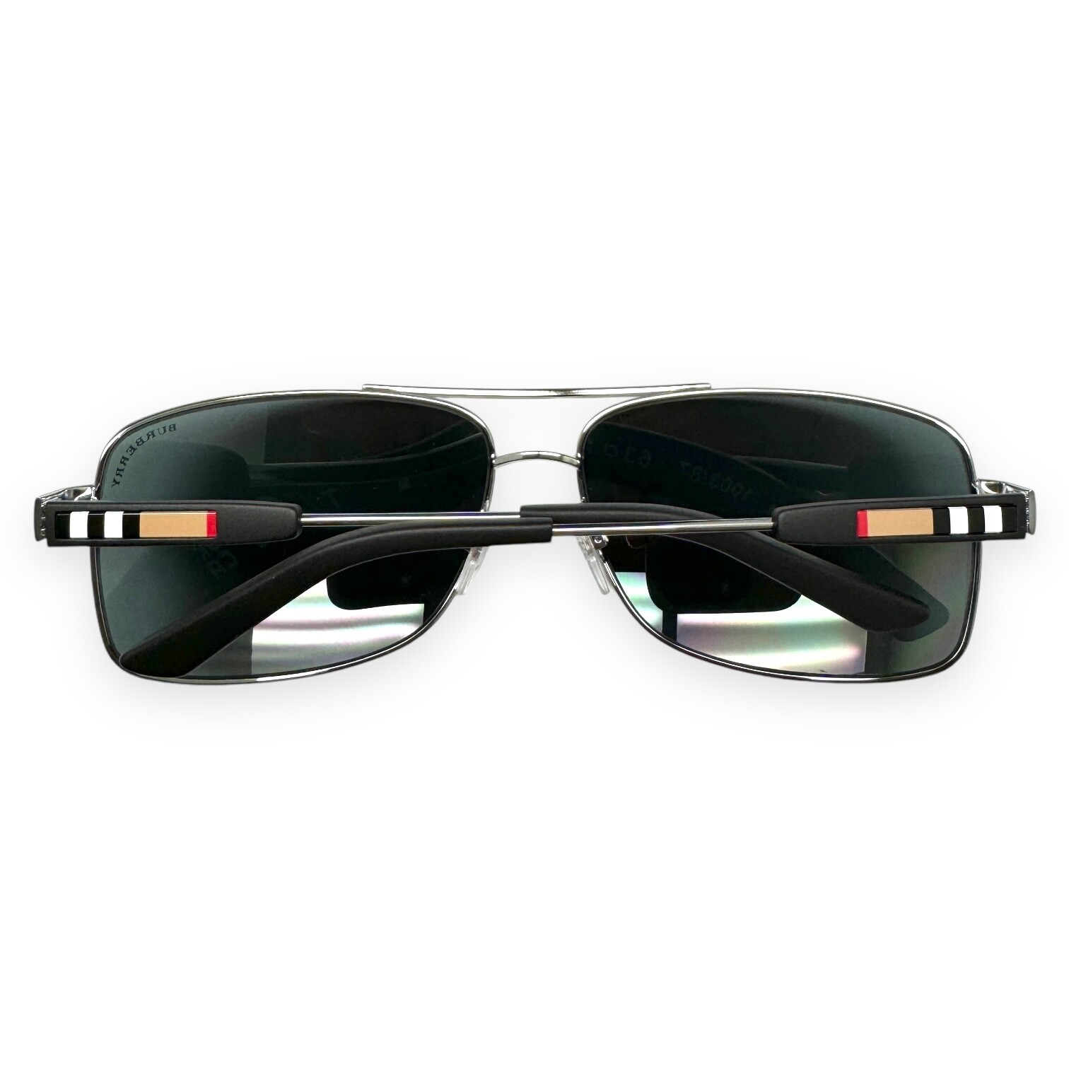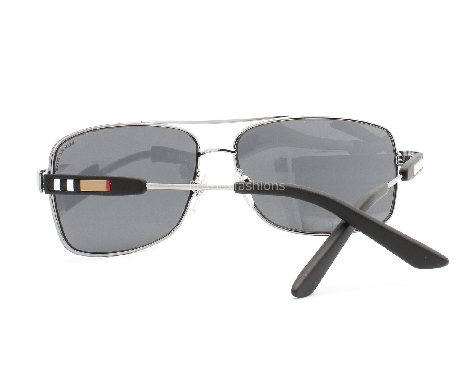Burberry Aviator Sunglasses BE 3074 1003/87 Polished Silver Matte Black w/case Included with your purchase: * Burberry box, case and cleaning cloth About our items: * All of our items are authentic. We encourage you to have them authenticated. * All sunglasses and eyeglasses are adjustable. If you find they fit too loose or too tight upon arrival, they can easily be heated and adjusted. This can be done yourself by using a hairdryer, or take them to an optical store they will do it for you. * Before making a purchase, please compare the measurements to a current pair of eyeglasses or sunglasses that you already own.