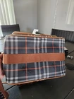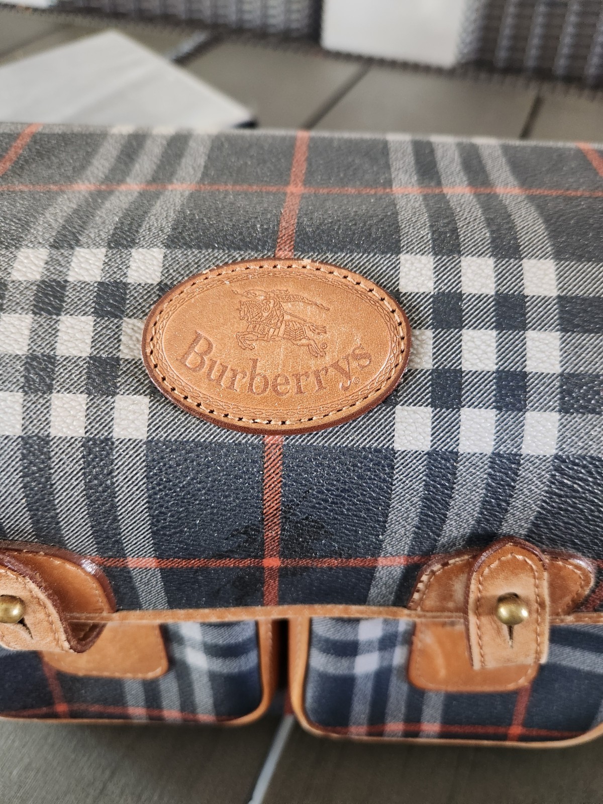 authentic vintage burberry with blue plaid print in really nicd condition almost no signs of wear inside