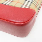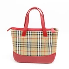 Burberry Hand Bag Red Plaid Brown Tote Canvas Leather Small Small Cute C