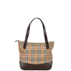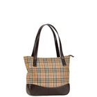 Burberry Nova Check Shadow Horse Handbag Tote Bag Beige Brown Canvas Leather W