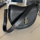 Burberry Rocking Horse Black Leather Shoulder or Crossbody Bag Gold Logo Accent