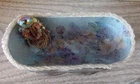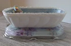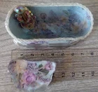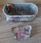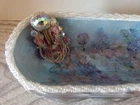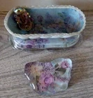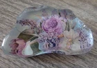 For your consideration are the pictured items, business Card holder Hand Crafted w/ matching paperweight beads and floral design. I made this from a butter dish and a paperweight. Decorated with vintage jewelry. Unique and one of a kind.