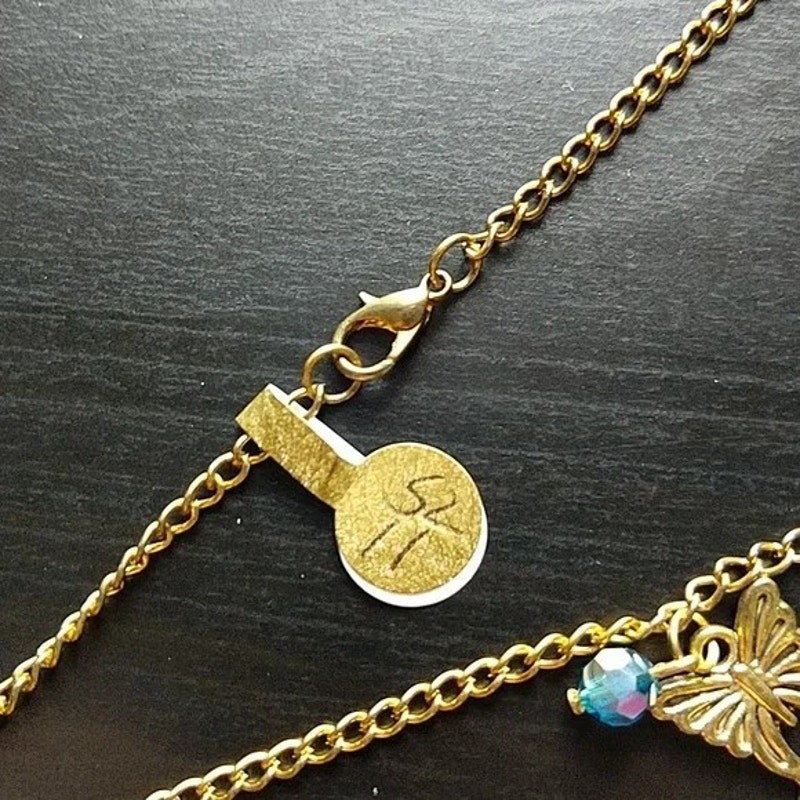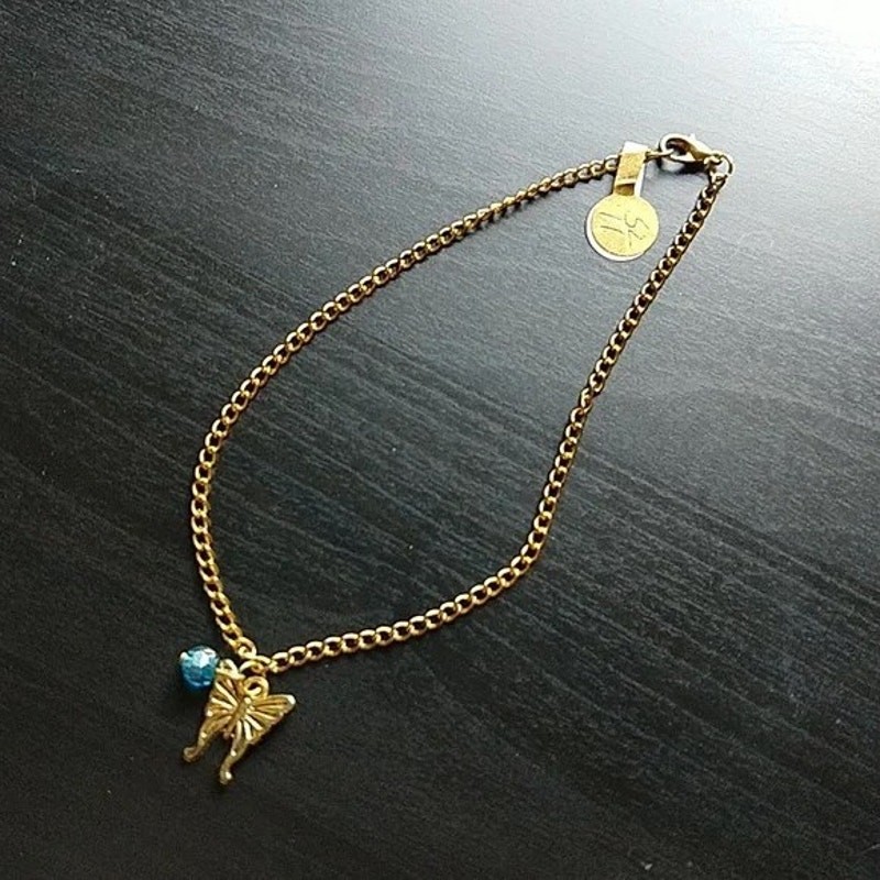 Anklet butterfly charm small blue bead 11" antique looking gold metal lobster claw clasp new old stock, never worn no markings Questions? Please Ask!