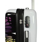 Description A unique butterfly emblazoned design and a dynamic exterior boasts a tough hardside construction that handles travel with grace and ease, while opening to reveal a fully stocked and versatile interior with garment restraints, accessory pockets, zipper pockets and more. Sitting confidently on 8 spinner wheels, this lightweight bag rolls in any and every direction. 12 inch tote bag dimensions: 12 inch H x 13 inch L x 8 inch W - 2 lb 21 inch carry-on dimensions: 21 inch h x 13 inch l x 9 inch w - 6.4 lb 25 inch upright dimensions: 25 inch h x 16 inch l x 10 inch w - 7.8 lb 29 inch upright dimensions: 29 inch h x 18 inch l x 12 inch w - 9.8 lb 18 x 12 x 29 ; Heavy-duty ABS