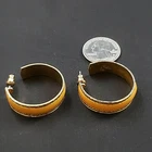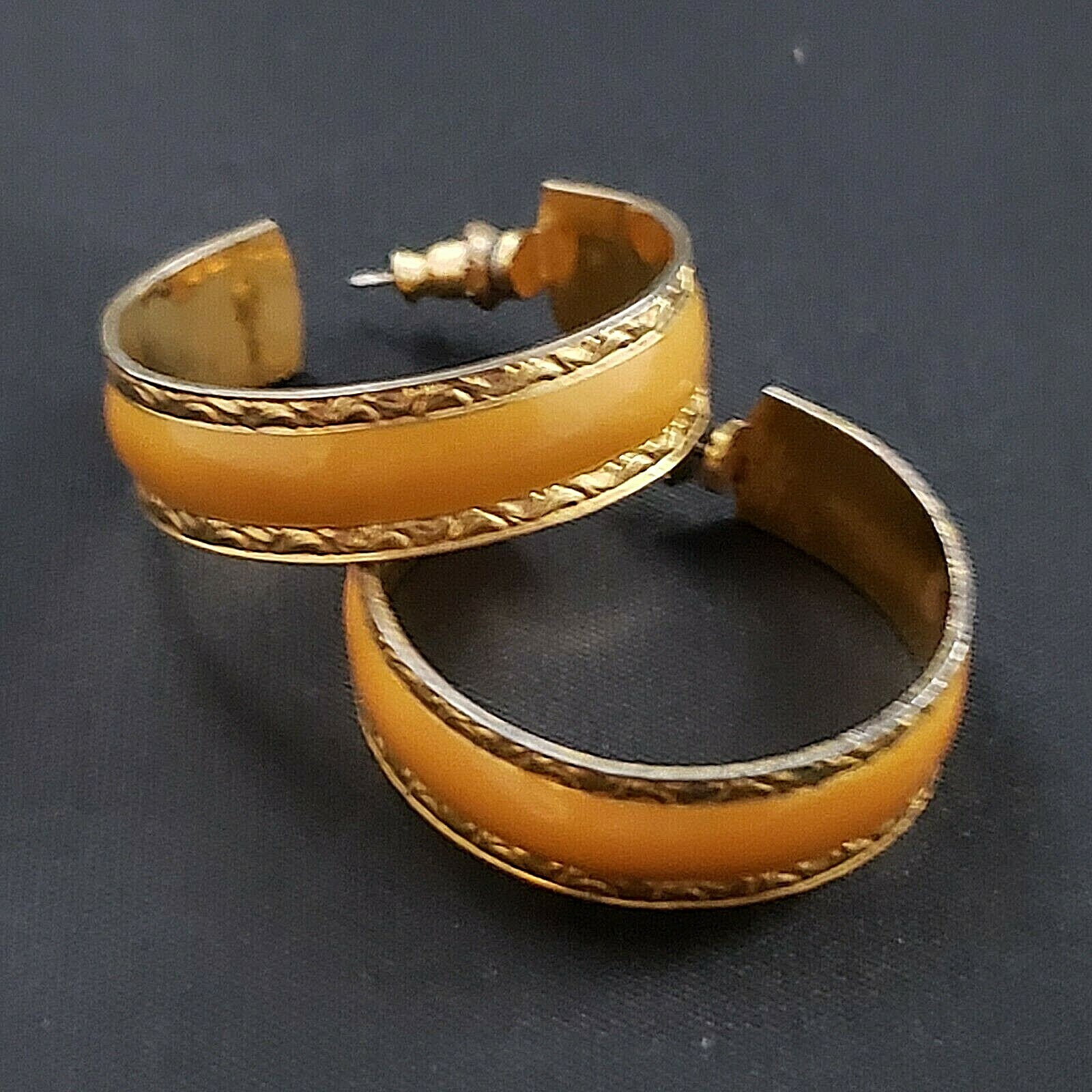 Earrings Stud Post Hoop Shape Butterscotch Yellow Enamel and Gold Tone 1.25" Gold Tone and Enameled Center with an Embossed Edge Med size, footprint approximately 1.25"x 1.25" Will ship international Combined shipping available