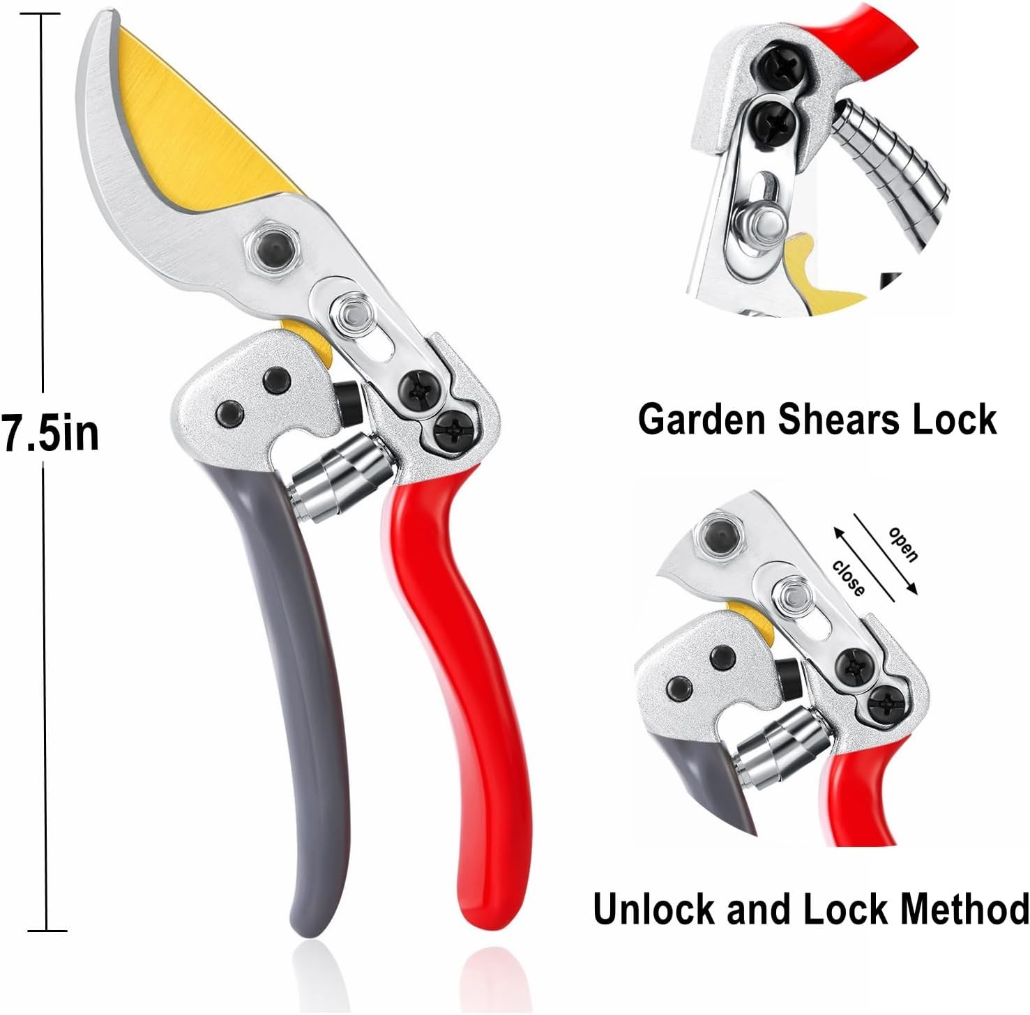 Free eBay listing template designed by dewiso.com Bypass Pruning Shears For Gardening,Gardening Scissors with Sharp, Rust Resistant Steel Blade,Garden Hedge Clippers Handheld Pruners FREE AND FAST SHIPPING! About this item The blades of pruners for shears adopts professional SK-5 steel is ultra-strong, sharp, rust and corrosion resistant. Pruning hand shears saves time and makes pruning easier. More safe with this hedge shears with one button, you can move the button to the right for the unlock of the Pruning Scissors, and move it to the left for the lock of Pruner Shears. Very easy to operate Both the blade and the handle are ergonomically designed. This makes it easy and comfortable for you to use Suitable for pruning all kinds of plants, cutting flowers, cleaning weeds, pruning fruit trees, cutting and picking fruits and vegetables, sorting out messy branches on the roadside and so on. Basically suitable for all your yard plants Warmly Notice:if you encounter any product problems ,we will solve it for you in a timely manner › Product We offer a 30-Day Return Policy on items which you are not completely satisfied with. You have the option for a full-refund or an exchange of the item. No returns are available on items shipped outside of the US . Shipping We offer Free Shipping to the US and ship within 2 business days of payment, usually sooner. We use UPS express shipping. That's why your products are usually delivered within 3 days . Contact We try our very best to make sure every customer is completely satisfied. If there's a problem , message us! We're happy to help. 24/7 live chat available.