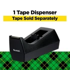 Scotch Deluxe Desktop Tape Dispenser, 1 Dispenser, 1 in. Core, Black, 100% Recycled, Home Office Supplies and School Supplies for College and Classrooms Categories Supplies Technology Office Furniture Cleaning and Breakroom Peripherals Other Scotch(R) 100% Recycled Desk Tape Dispenser, Black, C38-BK The best projects start with Scotch™ Brand. It has a classic black finish, with an economical design, and a weighted base to stay in place. It's a great choice to keep on hand in your home office, living spaces, school, workplace and more. The weighted, non-skid base is ideal for easy, one-handed dispensing. With a high quality cutting blade, you can depend on Scotch Brand quality designed to last for years. Go ahead, refill this dispenser with roll after roll and to save on waste. Great to gift teachers, co-workers or add to your own home office. Keep tape nearby to fix, create, wrap, ship and more. Always choose Scotch® Brand Tape to fill the dispensers, no matter the job. This option does not come with tape. Try Scotch® Gift-Wrap Tape for wrapping presents, Scotch® Super-Hold Tape for heavier duty labeling and organizing on surfaces like plastic, metals and cardboard. For everyday use refill with Scotch® Magic™ Tape that is ideal for 100's of uses. This dispenser is for tape refills that use a 1" core. The best projects start with the number one selling home and office tape (based on 2022 NPD data). Economical, reliable classic style desktop tape dispenser Weighted base for one-handed dispensing Replaceable 1 in. hub Classic black Non-skid base 13 Holds 1 in. core tape, up to 3/4 in. wide and 1500 in. long 2.7 in. x 2.7 in. x 6.4 in Tape Not Included Made in the USA with Globally Sourced Materials Recycled content - Product contains 100% total recycled content, helping you save resources and reduce waste. Contains Recycled Content - See Specs for Details. Features Keep one hand free for answering calls, writing notes and more while you tear off a piece of tape with this tape dispenser, which makes it easy to grab tape for sealing envelopes and packages. A heavy base means you won't have to worry about the dispenser sliding across your desk. Weighted rubber base holds dispenser in place. Greener choice — contains 100% total recycled content.