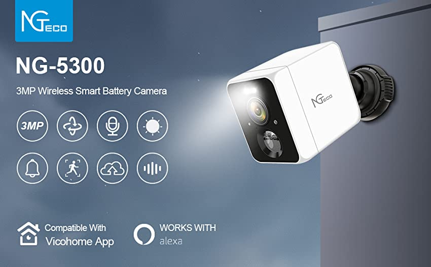 About this item 【2.5K(4MP) FHD Color Night Vision Premium Quality Camera】The picture clarity of the wireless cameras for home security is the key to home security. The NGTeco 2.5K security camera can assist you in viewing, monitoring, and recording clearly what is happening in and around your home even at night. 【Solar Powered Supply and 100% Wireless】The home security cameras wireless outdoor totally realizes 100% wire-free security. The security camera wireless outdoor is charged through the 5W solar panel (Included) to achieve a no wire and uninterrupted power supply. In addition to solar power supply, the solar outdoor camera comes with a 5000mAh capacity and low power consumption rechargeable battery, which can last standby time up to 12 Months. 【Smart PIR Motion Detection 】The outdoor camera wireless solar powered adapts an advanced PIR sensing technology, which filters and pushes detected notifications to the APP in real-time.In addition, You could set up PIR Sensitivity (Low/Medium/High) to capture some significant detection. 【2.4G Stable WiFi Network and IP65 Waterproof 】The outdoor wifi camera supports 2.4G Wi-Fi, easy to connect and stable. The outdoor camera wireless supports waterproof and can be used safely during the rain, hot day and extreme cold weather (14 °F ~ 113 °F). 【Privacy Protection& 30 Day Free Trial of Cloud Service】We focus on encrypted secure data and privacy protection, no one can access the information without your consent. NGTeco offers 30-day free trial of cloud service which contains cloud storage, intelligent notification for humans, pets & vehicles. Besides, we provide Free Lifetime USA Technical Support: Please feel free to contact us by phone or e-mail from 6:00 am to 6:00 pm (EST) on Monday to Friday for any support. 2.5K FHD Image and Video & Floodlight Color Night Vision for Home Security Camera This solar security camera wireless supports a high resolution of 2560 x 1440P image and video high quality, making it possible to take clear and colorful images day and night. It has two modes for night vision: Infrared Mode: White and black images and video Full-Color Mode: Full Color images and video For image quality, you can choose the resolution and night vision mode in VicoHome APP. Support iPhone, IPAD or Android work. The WiFi used by the camera: The camera only supports 2.4GH frequency band. Please don't choose the two-in-one when setting up the router, you must name 2.4 and 5G separately. Please connect the camera with 2.4GH wifi Ensure night-time clarity Built-in spotlight and sound alarm to enhance safety, and full color night vision. 30 Days Free Cloud Storage Even you are not interested in cloud storage, you can still able to live monitor for free via the Vicohone app. 1. Trial: Free trial for the first month 2. Basic Plan (Monthly): 2.99 3. Basic Plan (3 months): 7.99 4. Basic Plan (Annually): 31.99 Instant Alerts Wherever You Are Get immediate alerts right on your phone when camera identifies approaching people via the Vicohome app. Simply press the alarm icon to scare away intruders. Privacy is Our Priority NGTeco cloud platform provides cloud service with fInancial-grade priority, and your data is secured by comprehensive protection system Compatible with Alexa With a built-in waterproof microphone and high-fidelity speaker, the outdoor camera can real-time chat at any time and place with families or remote real-time warn strangers Customised Activity Zones By setting your own smart detection zones, NGTeco cam will only alert you while movement is detected within the designated area. Set up to 3 zones for home coverage.