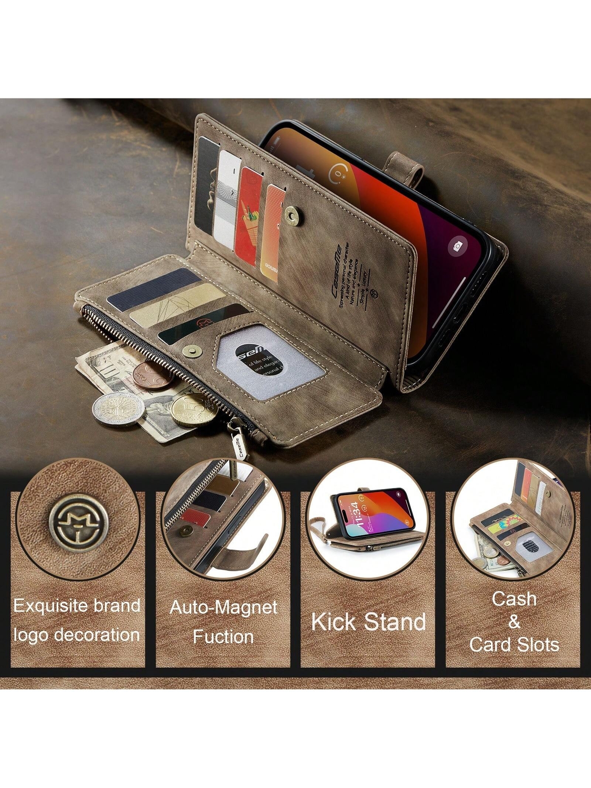 CASEME Caseme Wallet Phone Case Durable PU Leather Magnetic Flip Strap Wristlet Zipper Card Holder Wallet Phone Case Compatible With IPhone Samsung Redmi Brown on sale Color:Brown Material:PU Leather Type:Hand Strap Phone Case Pattern Type:Plain Gender:Men Gender:Women Gender:Unisex buy CASEME Caseme Wallet Phone Case Durable PU Leather Magnetic Flip Strap Wristlet Zipper Card Holder Wallet Phone Case Compatible With IPhone Samsung Redmi with cheapest price