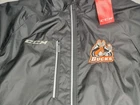 NEW WITH TAGS CCM SKATE JACKET - GREAT WARM-UP / SIDELINE / OR COACHES JACKET BLACK IN COLOR WITH REFLECTIVE ACCENT PIPING MENS SIZE MEDIUM UNIQUE BRECKENRIDGE BUCKS LOGO ON FRONT CHEST NEW