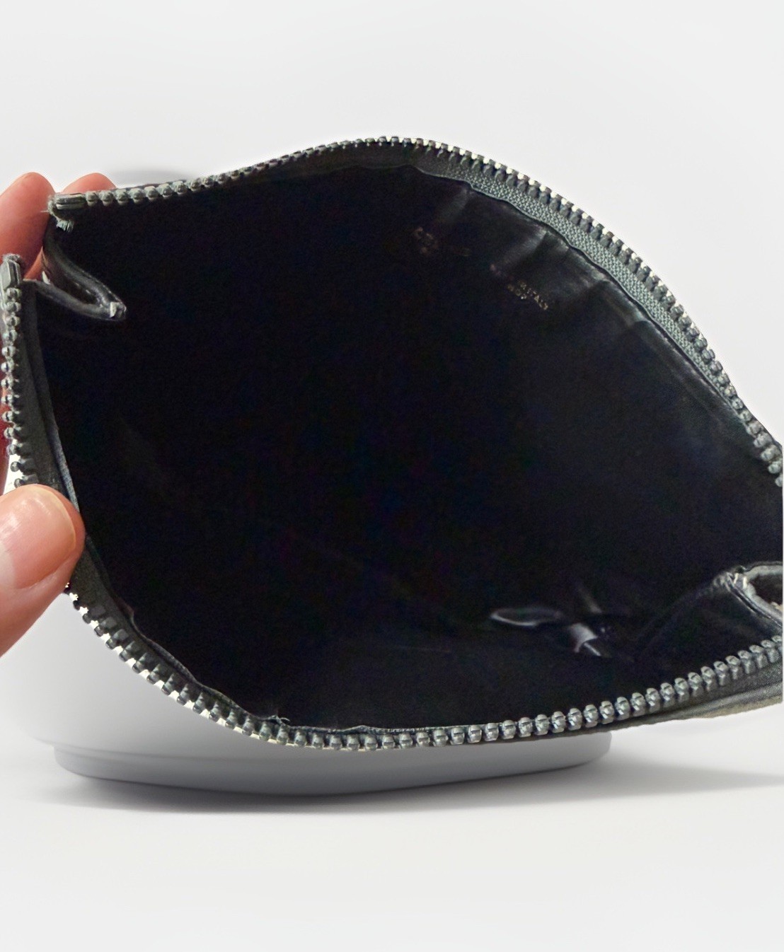 The CELINE Macadam Logo Monogram Zipper Pouch in grey color is a stylish accessory designed for women or men. Featuring the signature Céline logo, this pouch is both practical and fashionable, making it a versatile addition to any outfit. With a sleek design and secure zipper closure, this pouch is perfect for storing small items such as keys, coins, or makeup while on the go. The grey color adds a modern touch to the overall look, making it a versatile accessory for any wardrobe. See photos for measurements Note this item is in grey color and is not black !