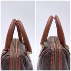 $ 13.2CELINE vintage Macadam Mini Boston Bag handbag Triomphe Logo Brown Leather/PVC
