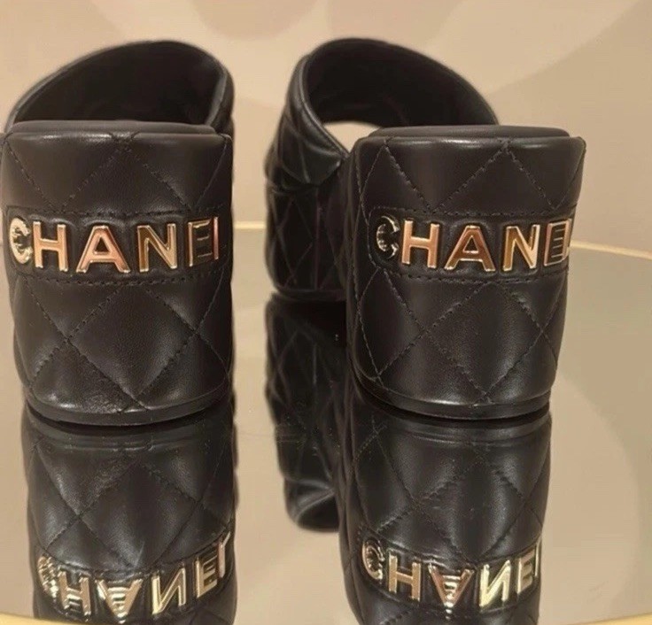 Chanel 23C quilted leather platform wedge mules sandals Worn once. Some scuffs on outsole only. No sigh of use o damage on upper leather, like new! Check all photos, feel free to ask me any questions about this item GORGEOUS!!! No box. Shoes only
