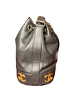 CHANEL Black Bucket Bag Gold Hardware Logo Drawstring Chain Strap Pouch