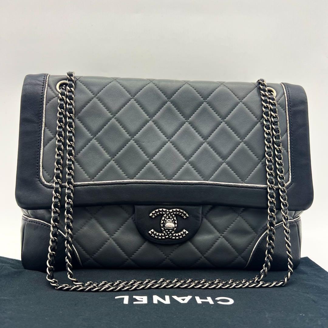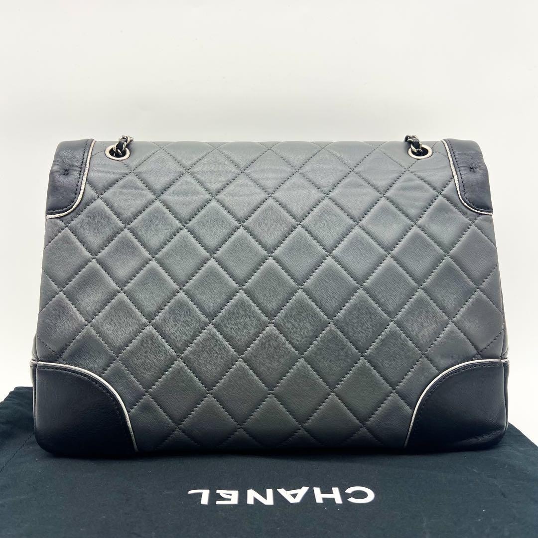 CHANEL Black Gray Matelass Lambskin Chain Shoulder Bag