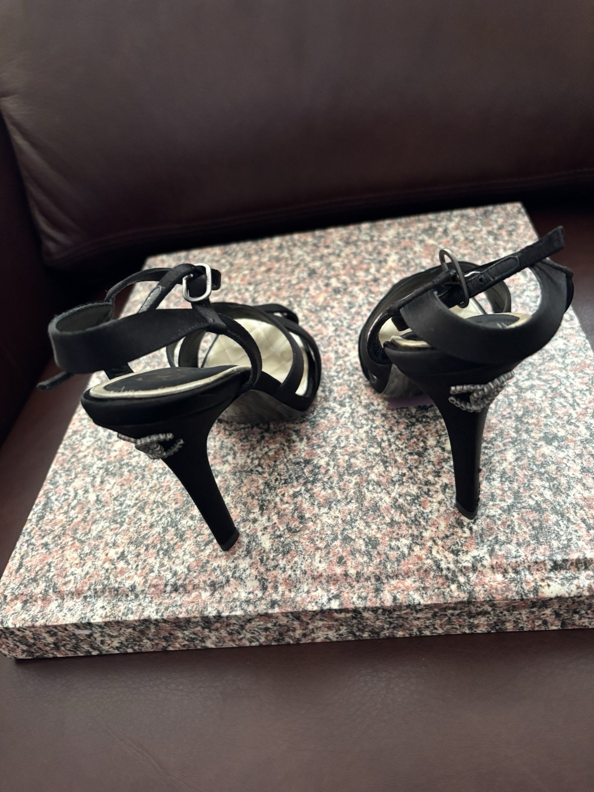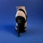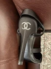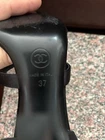 Elevate your evening ensemble with these stunning Chanel black pumps, a perfect blend of luxury and sophistication. The sleek stiletto heels are crafted from high-quality cork and silk, offering both comfort and elegance. Adorned with intricate black diamond accents, these slip-on pumps are designed to make a statement. Available in US size 7 (UK size 37), these pumps feature straps that add a touch of grace while ensuring a secure fit. The chic black color and timeless style make them an essential addition to any formal wardrobe. Whether it's a gala event or a sophisticated dinner, these Chanel heels are certain to complement your outfit with unparalleled style. Each shoe contains 32 Black diamonds/ 64 total
