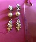 $ 13.45ChaneL A23 Gold Twist Pink Crystal & Glass Pearl XL CC Stud Earrings