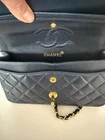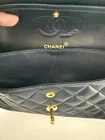 This shoulder bag is an icon of timeless elegance, embodying CHANEL's legacy of luxury and impeccable craftsmanship. Crafted from navy buttery soft leather, the quilted texture adds depth and sophistication, while the deep hue offers a refined alternative to classic black. The signature double flap design enhances both security and structure, and the interwoven leather and chain strap provides a comfortable carry. This is a bag for those who appreciate enduring style and the prestige of a true fashion classic, perfect for elevating any ensemble. MEASUREMENT 9" (L) x 6" (H) x 2.5" (D) Can be worn with double leather chain strap as shoulder bag or single strap for crossbody COLOR:Navy , looks very close to black( I thought it was black at the beginning when I looked at it , really pretty color) CONDITION:Please zoom into all pics as they are part of the description. The exterior looks very good . Some wear inside the bag . My picture actually make it look worse I guarantee its authenticity with money back guarantee. It does go through ebay authenticitation center before being shipped to buyer These bags are collectible and get more expensive every year so a definite good investment of your money