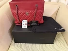 Authentic Chanel Red Caviar Quilted Grand Shopping Tote GST - 2018 Full Set Box & Card Up for sale is a beautiful 100% authentic Chanel Grand Shopping Tote (GST) in vibrant red caviar leather. Iconic quilted caviar body, smooth leather top with zipper closure, leather-interwoven silver chain straps, signature CC logo. Rear slip pocket. Date Code: 24452455 (produced 2018 – verified) Measurements: Approx. 35 cm W x 23 cm H x 14 cm D Strap Drop: 23 cm Condition: Excellent pre-owned with only very light natural wear. Leather supple, hardware bright, stitching perfect, interior spotless. No major flaws – see all 12+ photos! Included: Original Chanel box, authenticity card, dust bag. Red caviar GST is timeless and highly sought after in 2026. Perfect everyday luxury bag. No returns accepted. Sold as-is with 100% authenticity guarantee from authorized retailer. Please ask all questions before buying. Ships fast with tracking & insurance. Thanks for looking! 😊