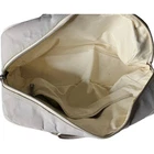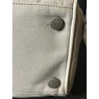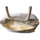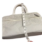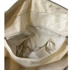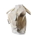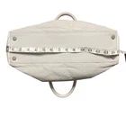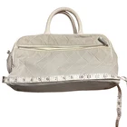 Preowned CHANEL Vintage Sports Line Boston Stretch Canvas Bag Light Gray The Hologram is missing but I had it authenticated by a third party authenticator. Please see the information in the photos. As well as the condition of the bag. It has discoloration wear. One of the bottom feet is missing and one is loose. The interior has pulled away from the side of the bag a bit by the open and close of the zipper It is 100% functional and an amazing bag. Quilted diamond stretchable canvas with white leather piping Interior Lined in leather Double leather top handles with rolled leather for forearm or hand held Production Year: 1990s trim and a bold cut out leather patch Chanel name logo across the front of the bag