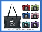 CHEER BABE ZIPPERED GEMLINE TOTE WE CAN ADD NAME IF REQUESTED YOUR CHOICE OF COLOR TOTE COLOR GEMLINE BRAND TOTE - VERY NICE AND DURABLE GREAT TO USE FOR OVERNIGHT BAGS, PURSES, TRIPS TO THE LAKE OR BEACH, CAMPING, USE AS A DIAPER BAG AND SO MUCH MORE THE DESIGN IS HEAT PRESSED VINYL AND WILL BE DONE IN WHITE BAG SPECS: 600-denier polyester 29½" Black webbing shoulder straps Zippered main compartment Front pocket with pen loop Two side mesh pockets Back panel is Black 20"W x 14"H x 4"D If you have a design request feel free to send us a message. We will work to see what we can do for you. Thanks! We try to ship out our items as quick as possible, but with made to order items it could take up to 5 days for the item to be completed and shipped. We thank you for your patience. DESIGN MAY BE SLIGHTLY ENLARGED TO SHOW DETAIL. DESIGNS WILL NOT EXCEED 6.5 INCHES EITHER IN WIDTH OR LENGTH. Be sure to fully examine all pictures closely and read auction completely prior to placing a bid. If you have any questions please be sure to contact me and I will do my best to answers them. I do combine shipping! Please note that our post office is closed on Sat & Sun so we can only ship Mon-Fri. Paypal is the only form of payment we accept at this time. If ever there is a problem please contact us prior to leaving bad feedback. We strive for a 5 star rating. Thank You :-) We sell a large variety of items. Be sure to stop in our store to see the other wonderful items we have to offer. From new to used to custom made. We do combine shipping!