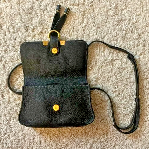 Soft, small grain calfskin Never been used - Adjustable shoulder strap for carrying a belt or shoulder strap - 1 inside flat pocket (see photo) - Lining: cotton - Width: 18.5 cm / 7.3 " - Height: 12.5 cm / 4, 9 " - Depth: 5 cm / 2" - Min belt length: 76 cm / 29.9 " - Max belt length: 118 cm / 45.5 " This item is made of semi-aniline leather The semi-transparent finish gives the product a robust character while preserving its naturalness.