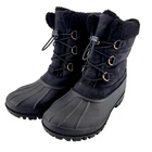 CHOOKA Women's Size: 8 Width: Medium Style: Cold Weather Color: Black Content: Upper: 100% Faux Leather Lining: 100% Polyester Faux Fur Outsole: TPR Rubber These Chelsea duck boots are a perfect blend of fashion and function. Designed for weather-ready comfort featuring a waterproof design to keep you protected in the rain, sleet, or snow and still look chic. Keep your feet dry and warm all day long featuring cold-rated -20 degrees Superior water repellency with defender repellent spray, and waterproof shell. With cozy all-day wear with fuzzy shearling lining and a cushioned support from a memory foam insole. Bungee lace, these boots provide versatile protection, ensuring your feet stay dry, warm, and comfortable in any weather. Waterproof design to keep you protected in the city on a rainy day, around the farm or enjoying any outdoor activities. Ultimate comfort with a plush faux vegan fur lining. Elastic gore insets sides that are easy to slide into. This iconic shoe style goes with everything!
